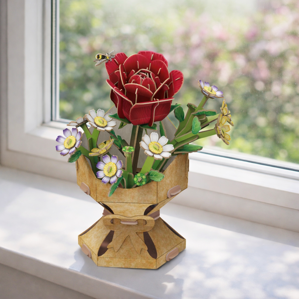 Bring everlasting elegance into your space with the Rose Flower Bouquet - 3D Puzzle. With 120 precision-cut pieces, this intricate puzzle lets you build a stunning bouquet of roses and daisies —no scissors, no glue, no mess. Just press, pop, and piece together a beautiful floral arrangement that never wilts.