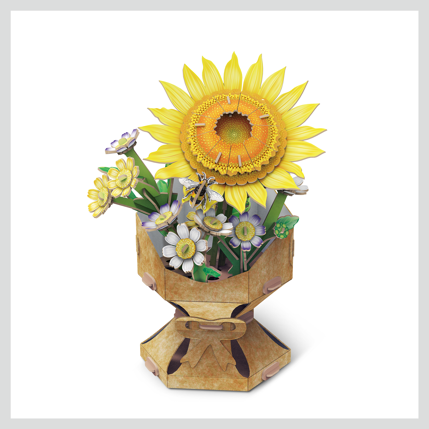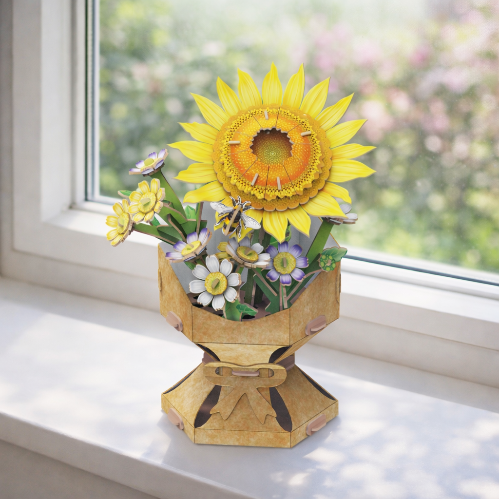 Bring everlasting elegance into your space with the Sunflower Flower Bouquet - 3D Puzzle. With 102 precision-cut pieces, this intricate puzzle lets you build a stunning bouquet of sunflowers and daisies —no scissors, no glue, no mess. Just press, pop, and piece together a beautiful floral arrangement that never wilts.