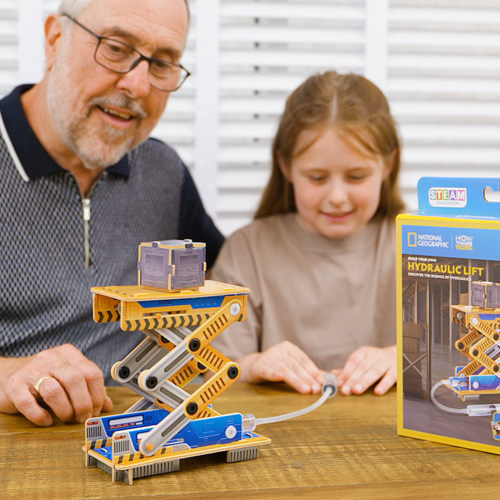Discover the fascinating world of hydraulics with this National Geographic STEAM education kit. Perfect for young engineers aged 5 and up, this build-your-own hydraulic lift project brings science to life through hands-on learning.