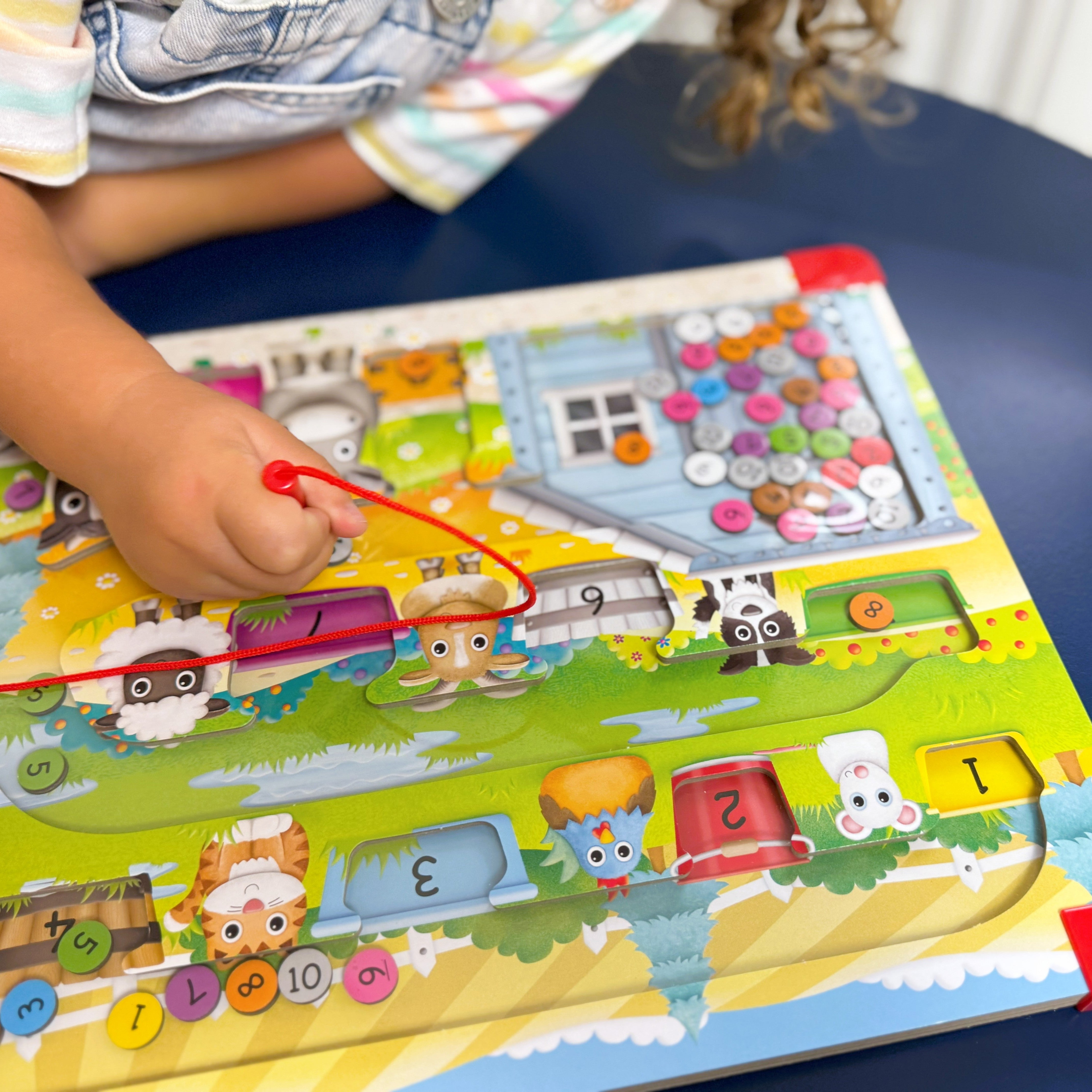 Little ones will love to explore this fun farm maze, as they sort the 1-10 numbered pieces into the corresponding location. This fun and colourful hands-on farm animal magnetic tray puzzle helps children to learn numbers in a fun and engaging way.