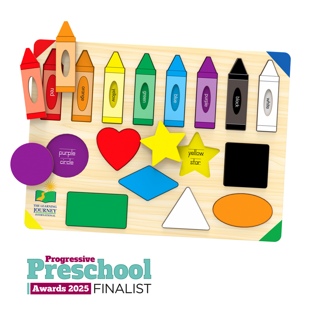 With so much to see, touch, and learn, it’s no wonder this puzzle is award-winning with stellar reviews! Easy to lift puzzle pieces consist of crayon shapes to teach colours and geometric shapes to develop shape recognition. Under the puzzle pieces you will find the shape names and colours in lined text that supports upper and lowercase handwriting skills. All the pieces fit neatly in a tray for puzzle solving fun and tidy storage!