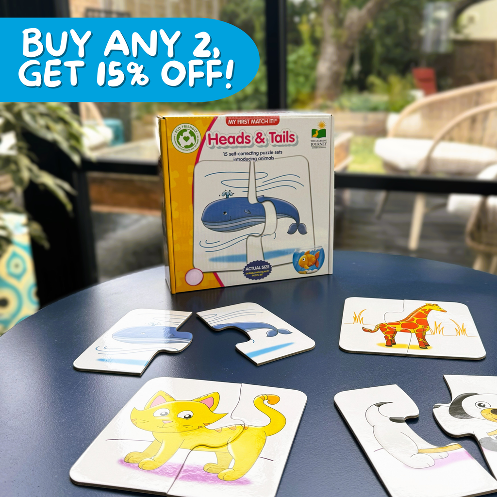 My First Match It! puzzles are designed to provide just the right level of challenge for the individual child; begin by offering just two matching pieces; increase the challenge level by simply offering more pieces to choose matches from. This My First Match It! Heads and Tails Puzzle Set is a great way of boosting your child’s growing ability to focus on the task at hand. The puzzles are self-correcting which means that only one piece will fit with any other, eliminating frustration and making concentration stronger for longer. Puzzles also encourage key problem solving, improved focus as well as boosting confidence and self esteem. Suitable for young children age 2-5 years old.