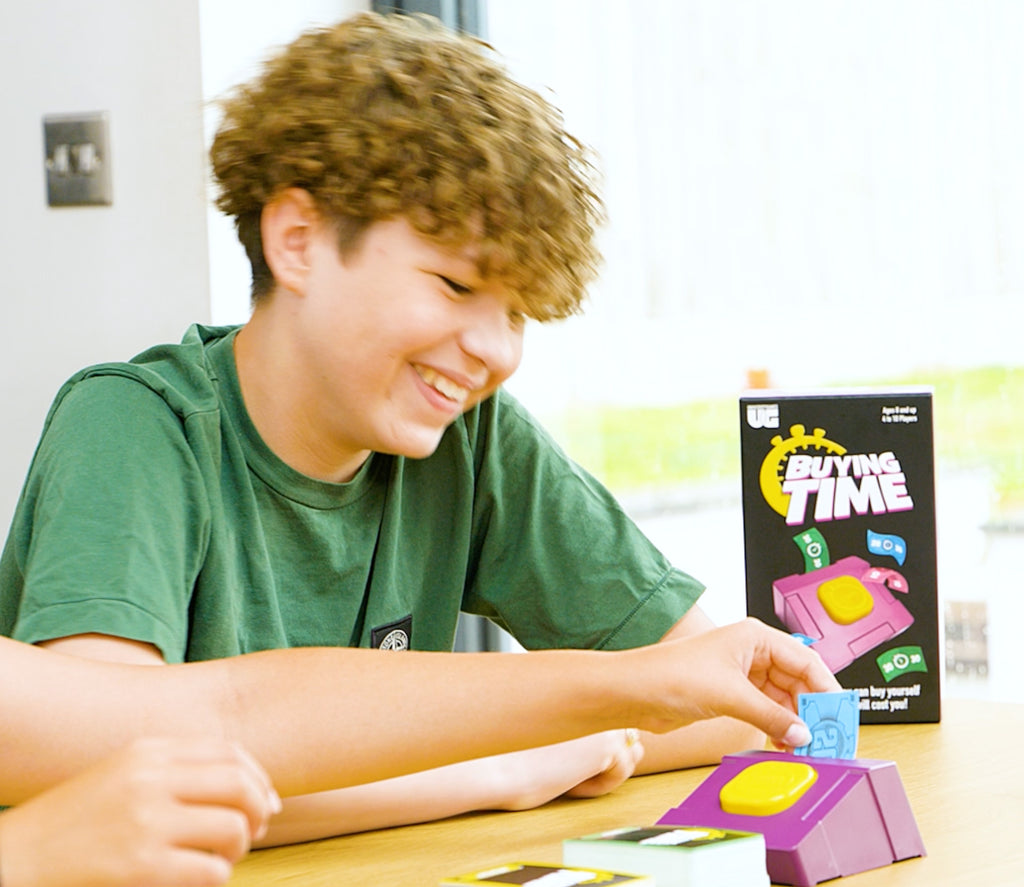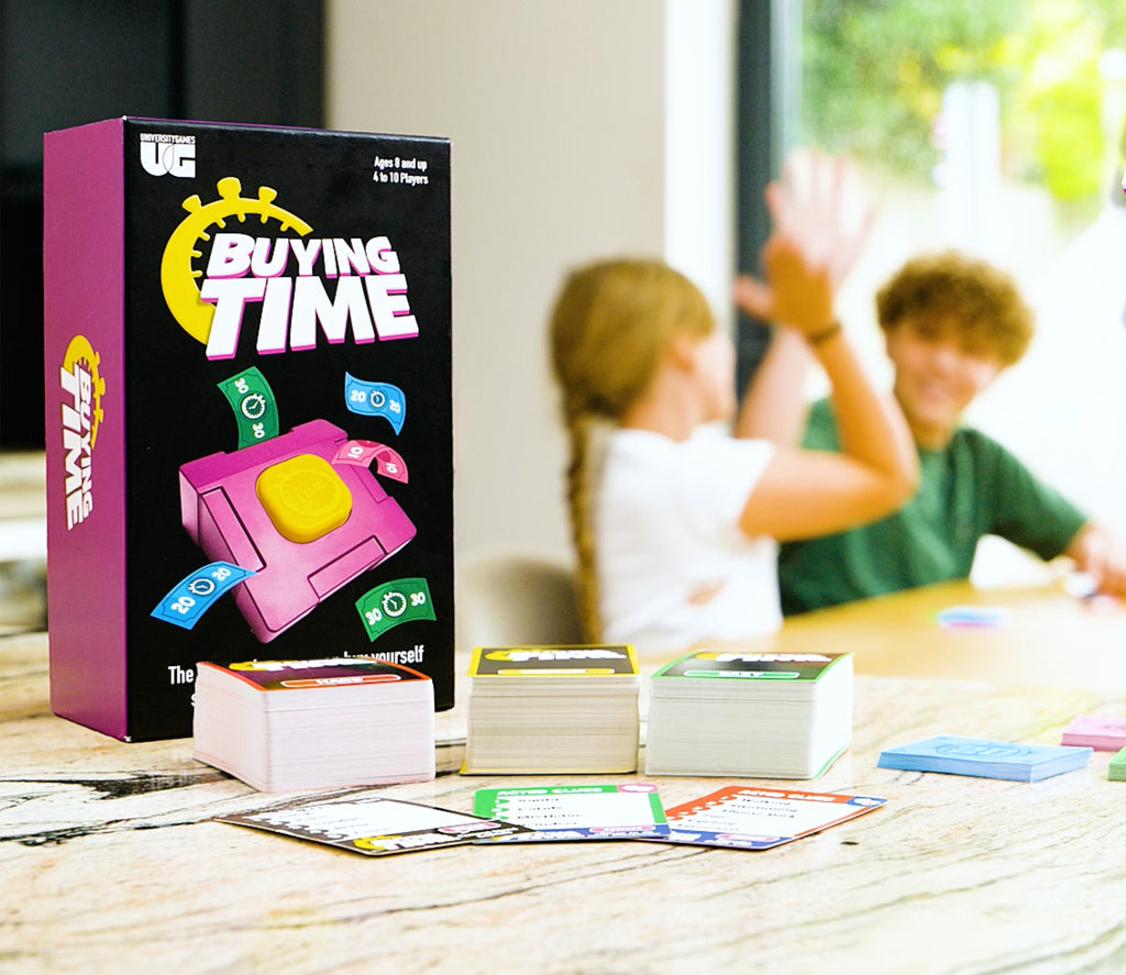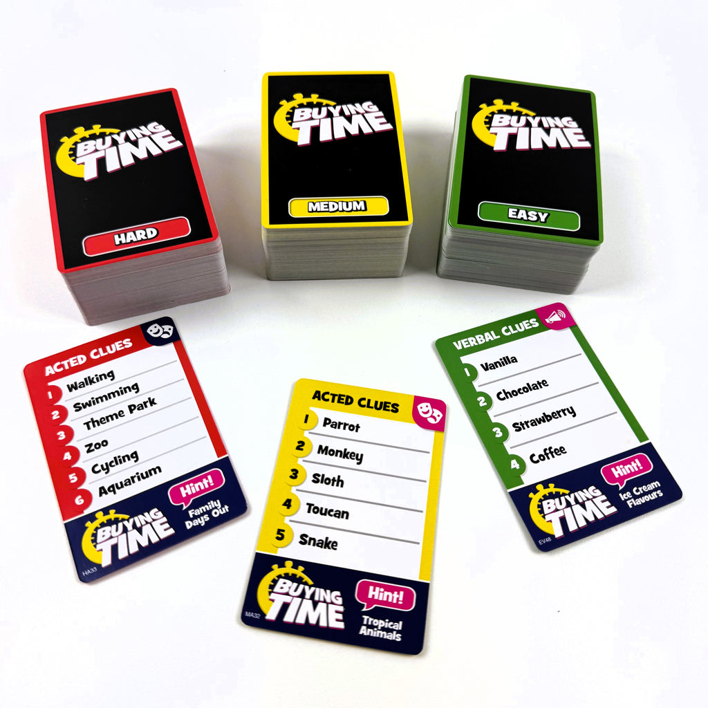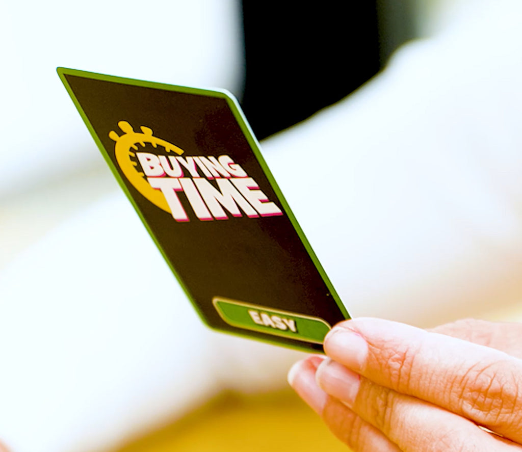 The game where you can buy yourself some time...but it will cost you! Unlike any other board game, Buying Time is the game where you decide how much time you and your team need to answer the questions, but how much are you willing bet to earn more money! Use the clever money counter to insert your money, the money converts to time. But how much time do you really need for your team mates to answer all the questions on the card?