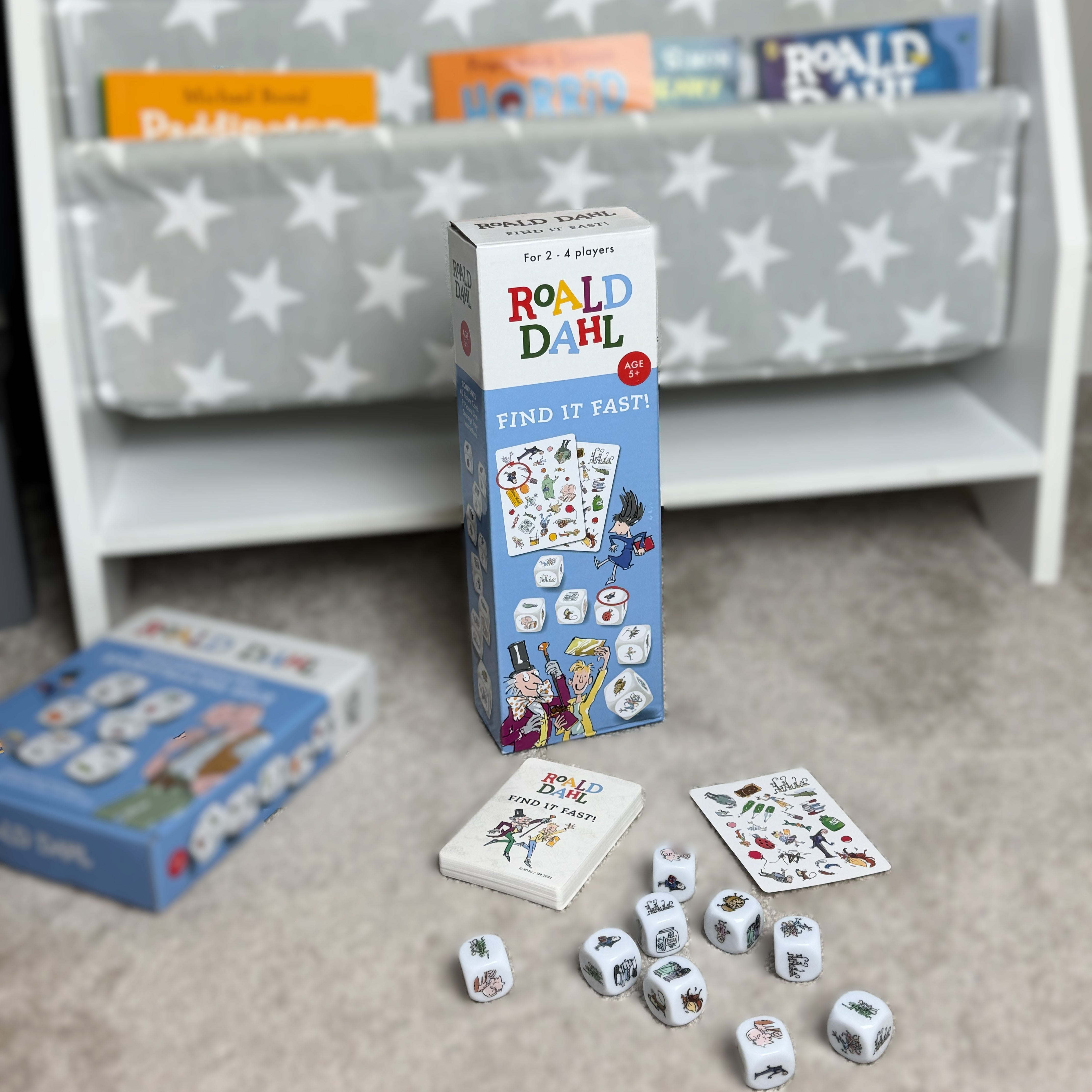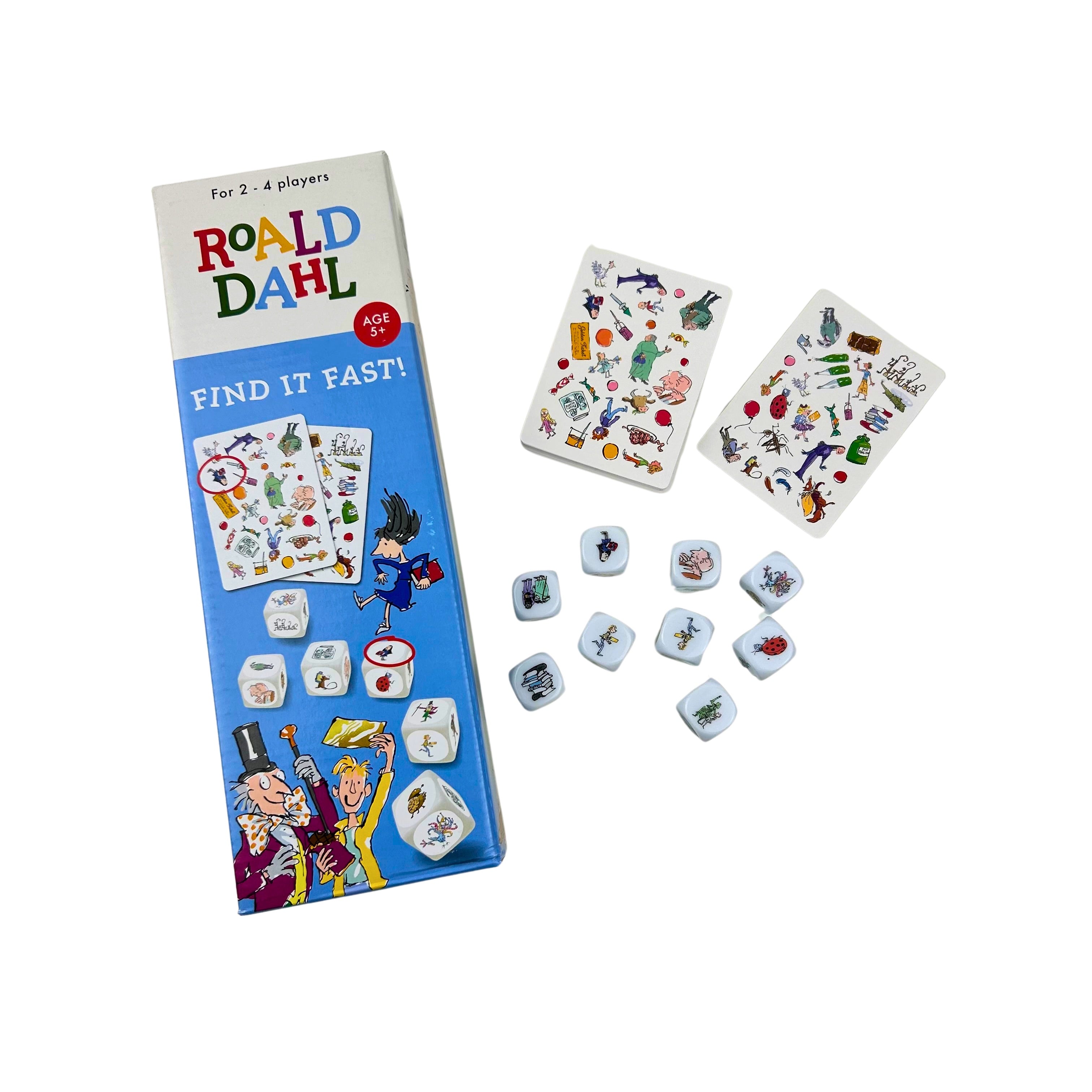 Everyone loves Roald Dahl stories, the kind and gentle BFG, extraordinary Matilda or the weirdly wonderful Willy Wonka! Roald Dahl Find it Fast is packed full of beautiful illustrations from Roald Dahls stories, so pick a card, roll the dice and Find it Fast! Using the 40 picture cards and 9 Picture Dice, find an image on one of the dice that matches the card to win the round. The player who finds the most matches by the end of the game wins! The Roald Dahl Find It Fast game is a great interactive game that promotes hand eye coordination skills and with three different ways to play, it will provide plenty of fun and entertainment for the whole family.