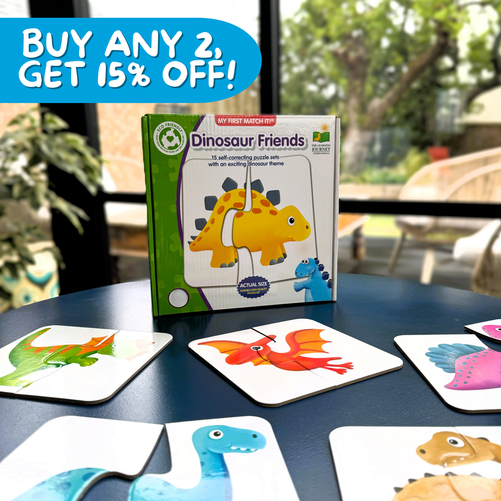 There is plenty of puzzling Dino fun to be had with the this colourful set of 15 two-piece Dinosaur themed puzzle jigsaws! This My First Match It! Dinosaur Friends offers children over the age of 2 years, with an excellent introduction to their favourite dinosaurs, as the learn to recognise many different dinosaurs by simply matching the correct pieces to complete the puzzle.