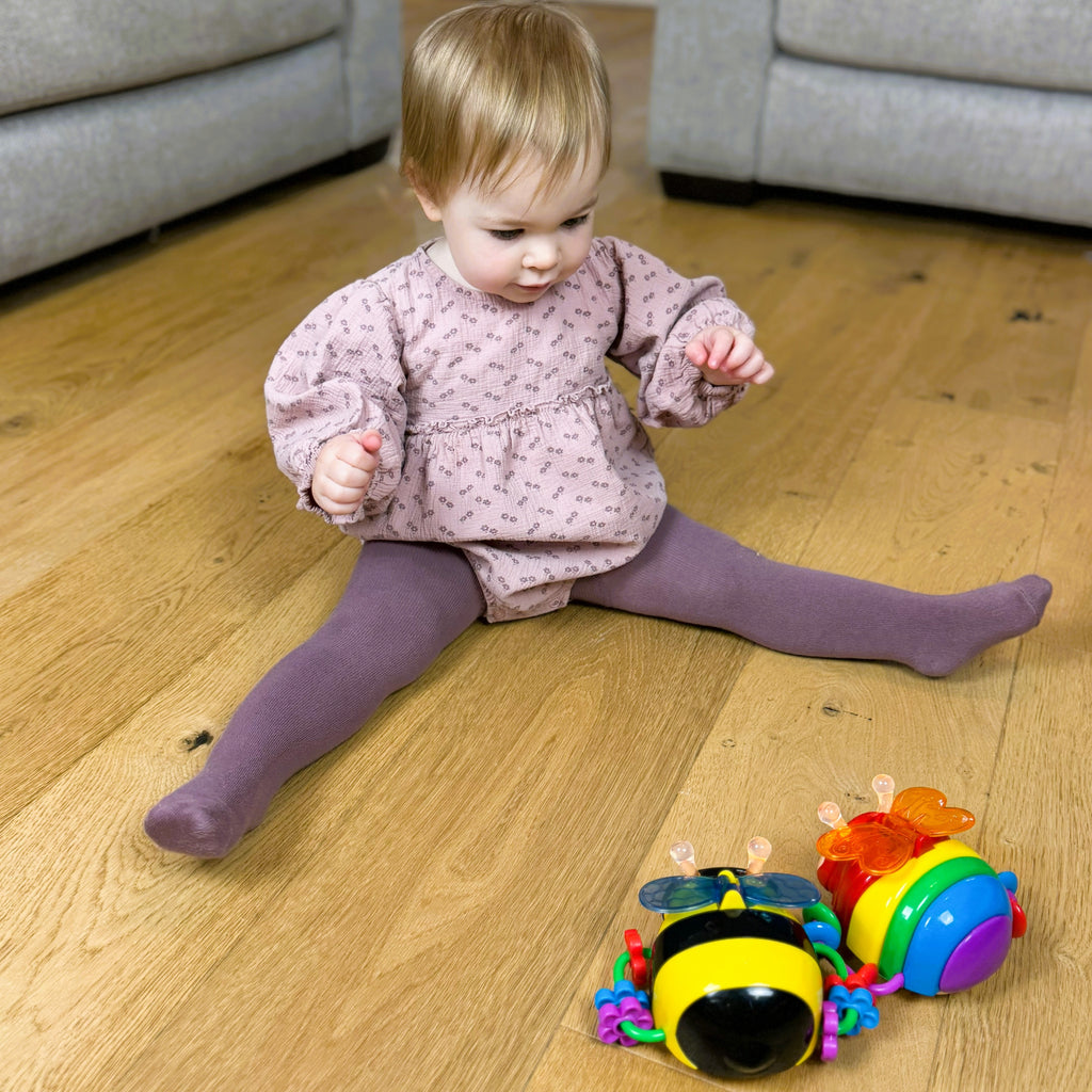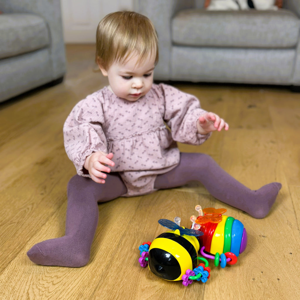 The Crawl About Bee encourages little ones to crawl as it moves across the floor and features a bright, baby-friendly design with three fun melodies Tap the cute button nose to wake the bee and then simply press its back to watch it go! The fun, interactive bee includes classic nursery rhymes such as Twinkle, Twinkle, Little Star, Row, Row, Row Your Boat, and Itsy-Bitsy Spider. This award-winning little bumblebee is brilliant for developing gross motor skills for little ones as they first start to explore and crawl! The Crawl About Bee toy has many educational benefits that include encouraging independent play and aiding visual and listening skills as well as supporting gross motor skills as it encourages movement and crawling. Suitable for age 6 months and over. Requires 2 x "AAA" batteries (included).